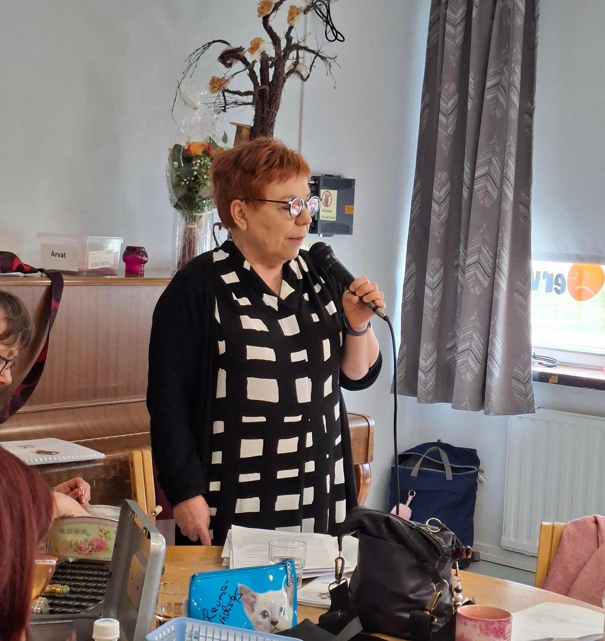 Merja kertoi meille hyvinvointialueen tämän hetken tilanteesta ja tulevaisuuden näkymistä. Lopuksi yleisö sai esittää kysymyksiä ja niihin saatiin vastaukset. Saimme Merjalta monet kehut siitä, että meitä oli paikalla niin paljon ja että ylipäätään Outokummussa on paljon vapaaehtoistoimintaa. Merja epäili, että täällä täytyy olla pohjavedessä jotain, joka tämän selittää.