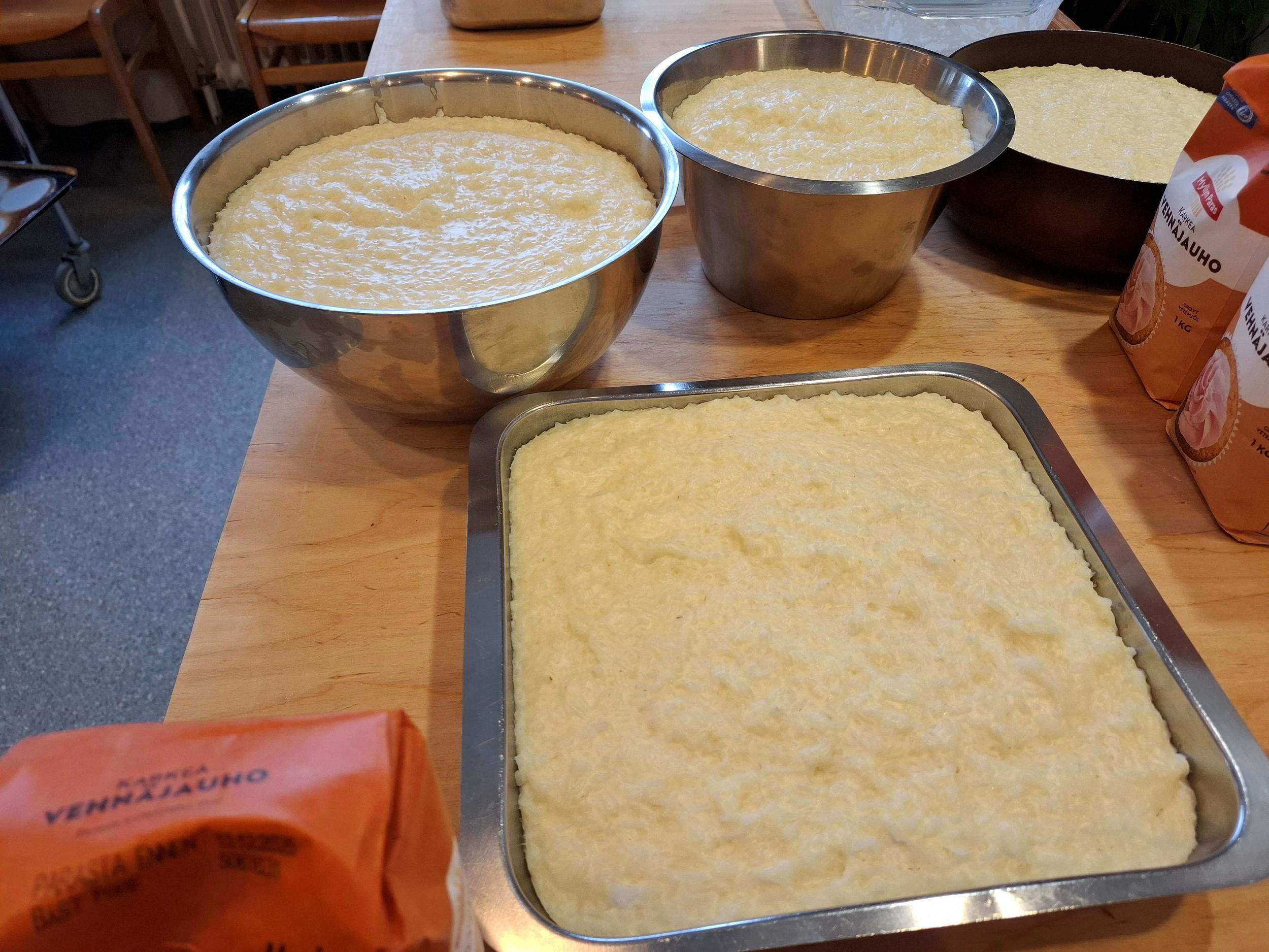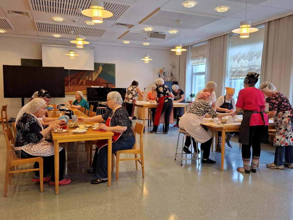 Keskiviikkona meillä oli piirakkatalkoot perinteiseeen tapaan. Jälleen meitä oli paikalla vajaa kolmekymmentä ahkeraa talkoolaista. Ensimmäiset tulivat paikalle jo klo viisi, että saatiin ajoissa valmiiksi riisipuuro, perunamuusi ja piirakkataikina. Puoli seitsemän maissa tulivat paikalle loputkin talkoolaiset ja sitten alkoi ihan varsinainen piirakoiden leipominen, paistaminen, voitelu ja pakkaamminen.