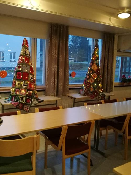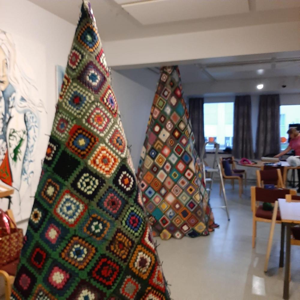 Outokummun Reumayhdistyksen askartelukerhossa 19.11. kokeiltiin kaikkien kuusien runkojen päälle peitot ja valot. Uimahallille tulevaan kuuseen kiinnitettiin Outokumpu logoneliöt paikalleen. Tällä tavalla tästä kuusesta saatiin juuri Outokummun näköinen kuusi. Voisiko se olla nimikkokuusi?