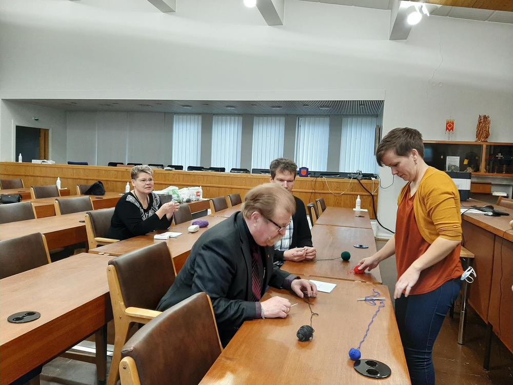 Torstaina 29.10. oli kaupungintalolla virkkaustapahtuma, johon Leena Vähäkoski oli haastanut kaupungin työntekijöitä virkkaamaan isoäidinneliöitä. Paikalla ei ollut kovin paljon ihmisiä, mutta tunnelma oli rento ja kaikilla oli hauskaa. Leena opetti virkkaustekniikkaa ja niin siinä kävi, että kaupunginjohtaja sai virkattua yhden isoäidinneliön, vaikka oli edellisen kerran virkannut pikkupoikana alaluokilla. Saamme siis yhteen kuuseen kaupunginjohtajan virkkaaman isoäidinneliön. Suosittelen noudattamaan esimerkkiä ja kokeilemaan virkkausta leikkimielellä, vaikka edellisestä kerrasta olisi pitkä aika. Siitä voi tulla uusi harrastus, jos siihen tykästyy.