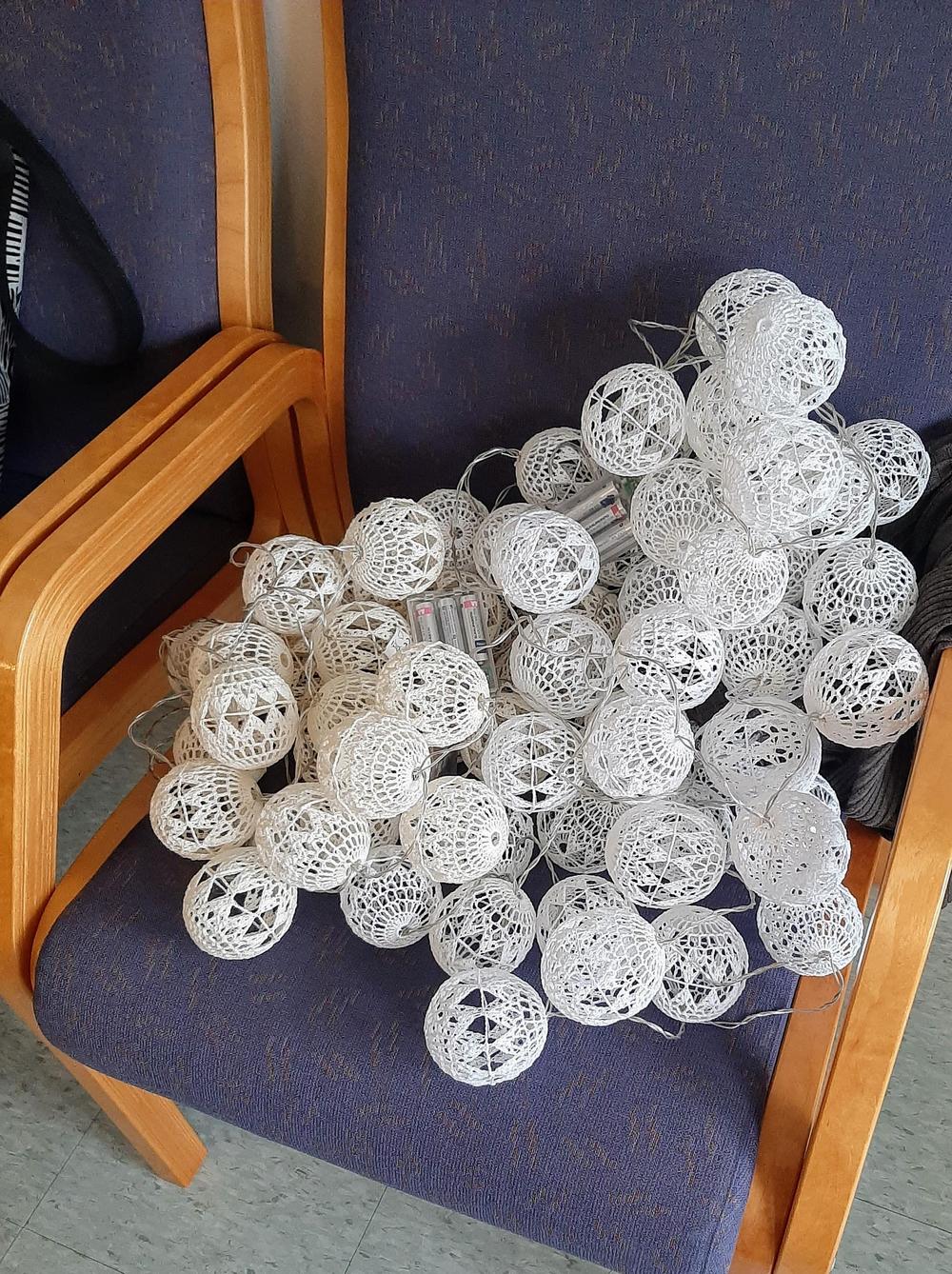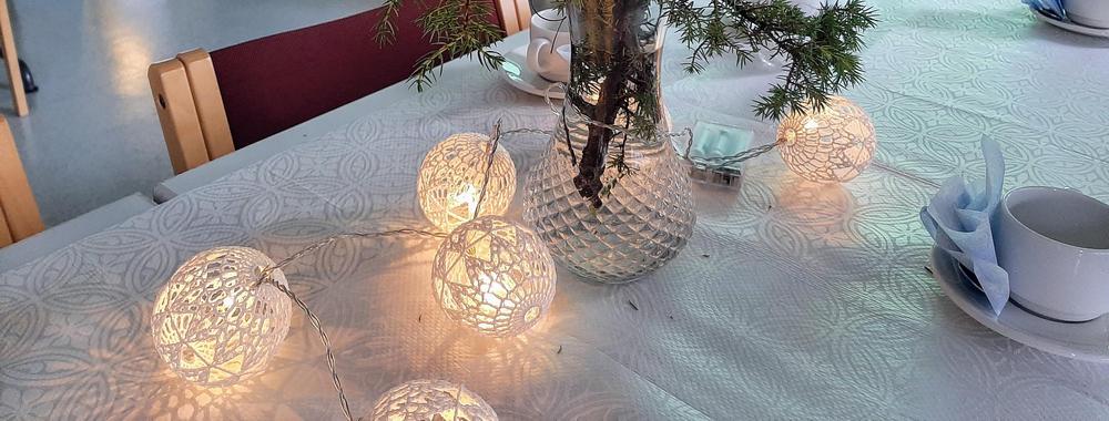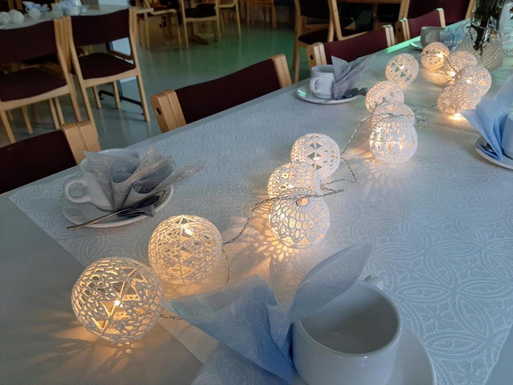Ennen joulua saadaan virkatut joulukuuset esille Outokummun keskustaan ja sekin osaltaan tuo valoa pimeään aikaan. Seurakunnassakin on tehty virkattu joulukuusi ja sen perusteella mitä olen kuullut, oletusarvoni on, että kuusi on todella kaunis. Ensimmäisenä adventtina kuusi laitetaan paikalleen kirkkosaliin. Siellä sitä voi ihailla.