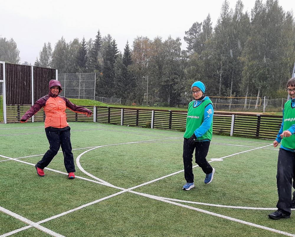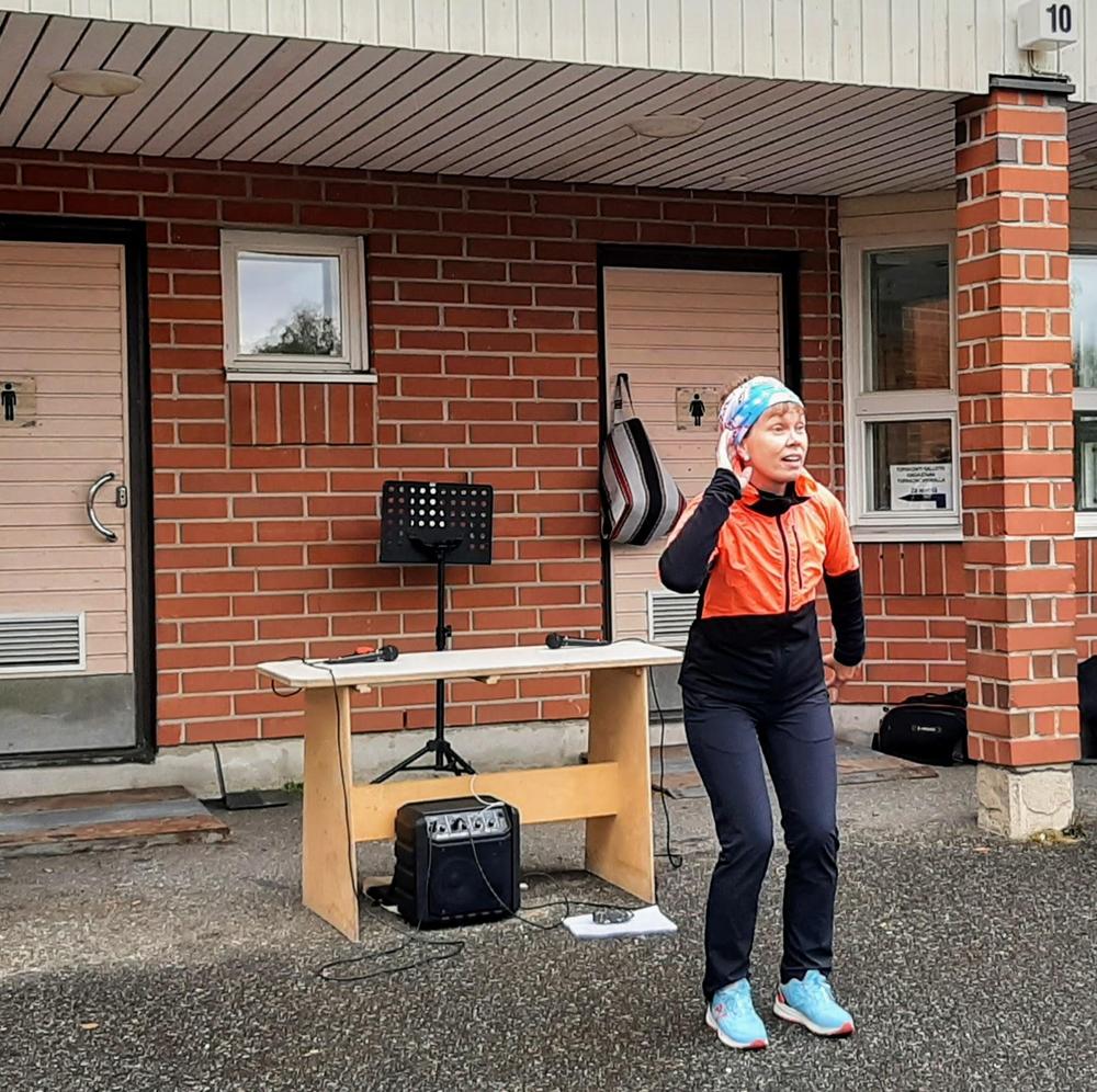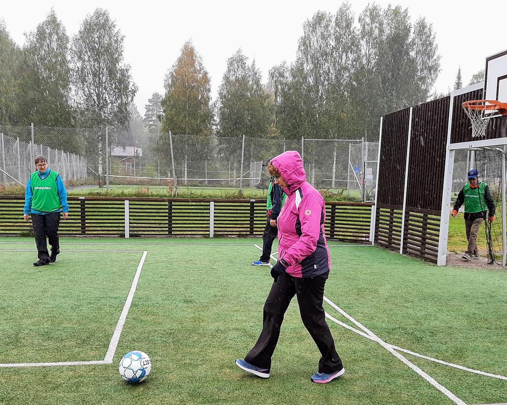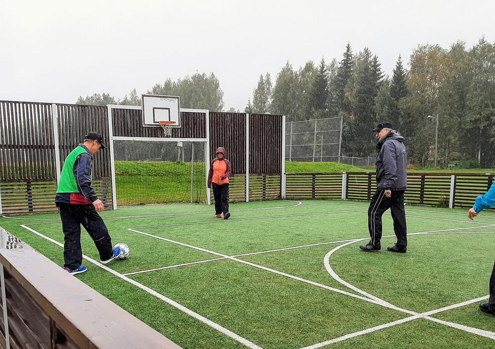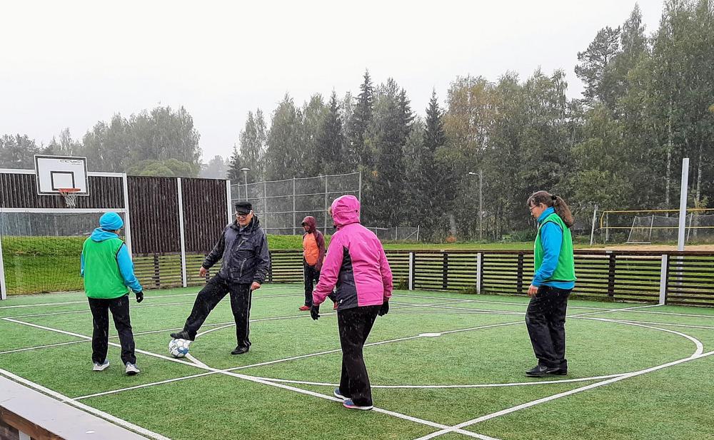 Mari Hirvonen / Ovela ohjasi musiikin säestyksellä hauskan, leikkimielisen alkujumpan. Myös muut ohjelmat oli järjestetty pilke silmäkulmassa. Martta ja Tyyne / Via Dia esittivät ratkiriemukkaan musiikkiesityksen. He olivat tehneet Linda Linda -kappaleeseen omat sanat ihan tätä tapahtumaa varten. Luontobingon pisteitä pääsi keräämään, kun kävi kävelyllä lähimetsässä. Monitoimihallin yläkerrassa Arto ohjasi ampumaharjoituksia (turvallisesti ilman mitään luoteja). Matovaaran kentällä oli sitten tämän tapahtuman pääohjelma eli kävelyjalkapallo, jota oli ohjaamassa Outi Kokko-Ropponen Eläkeliitosta. Kameran linssin takaakin kävelyjalkapallo näytti niin hauskalta, että sitä pitää päästä vielä kokeilemaan. Tämän kaiken lisäksi oli järjestetty verenpaineen ja kolesterolin mittausta ja arpajaiset. Pullakahvit tarjosi Via Dia ja kahvilla jokainen voi käydä oman aikataulunsa mukaan.