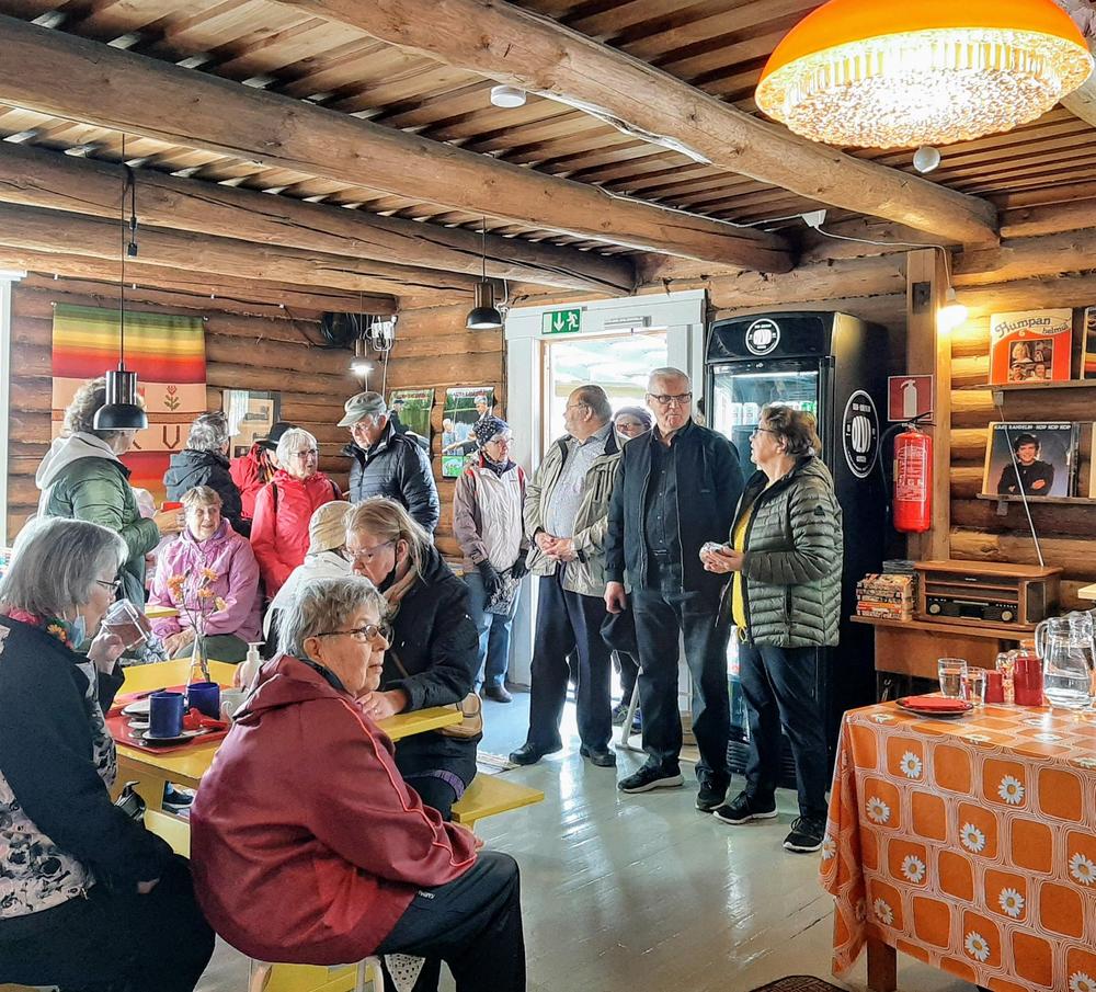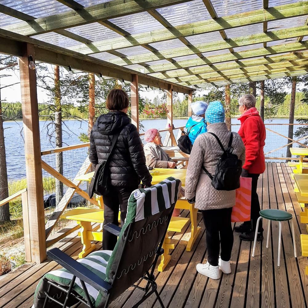 Aloitimme tämän syksyn kerhot ulkoilun ja kahvien merkeissä Kaunisniemessä 6.9. Ennen puolta päivää meitä oli linja-autoasemalla iloinen joukko lähdössä kohti Kaunisniemeä ja osa porukasta tuli omilla kyydeillä. Sään haltijat olivat meidän puolellamme sillä varsin viileän viikonlopun jälkeen sää oli hieman lämmennyt eikä tuuli ollut enää yhtä kylmä. Osa porukasta lähti heti kävelyretkelle tutustumaan Särkiselän leirintäalueen mökkialueeseen. Marja Tiittanen oli avannut osan mökeistä, että niiden sisätiloihinkin pääsi tutustumaan. Porrastimme toimintoja, joten osa porukasta tuli heti alkuun kahville. Näin saimme hieman väljyyttä kahviotilaan. Onneksi kahviossa on iso terassi ja sielläkin voi kahvitella, kunhan oli tarpeeksi vaatetta päällä. Järven rannalla tuppaa olemaan hieman viileää syksyllä.
