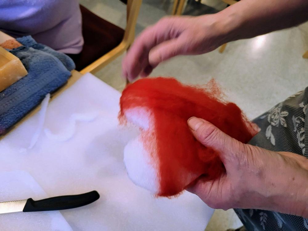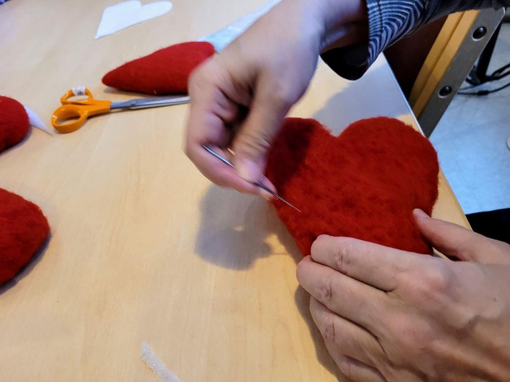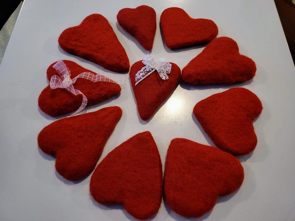 Tämän vuoden viimeisessä käsityökerhossa huovutettiin punaisia sydämiä. Kuvista näkyy, että vaikka muotti oli samanlainen niin luovaa mielikuvitusta ja omia kädentaitoja käyttäen sydämistä saatiin persoonallisia ja keskenään erilaisia. Koska huopasydämet olivat kerhon loppuessa vielä kosteita, jäi loppukoristelu kotitehtäväksi.