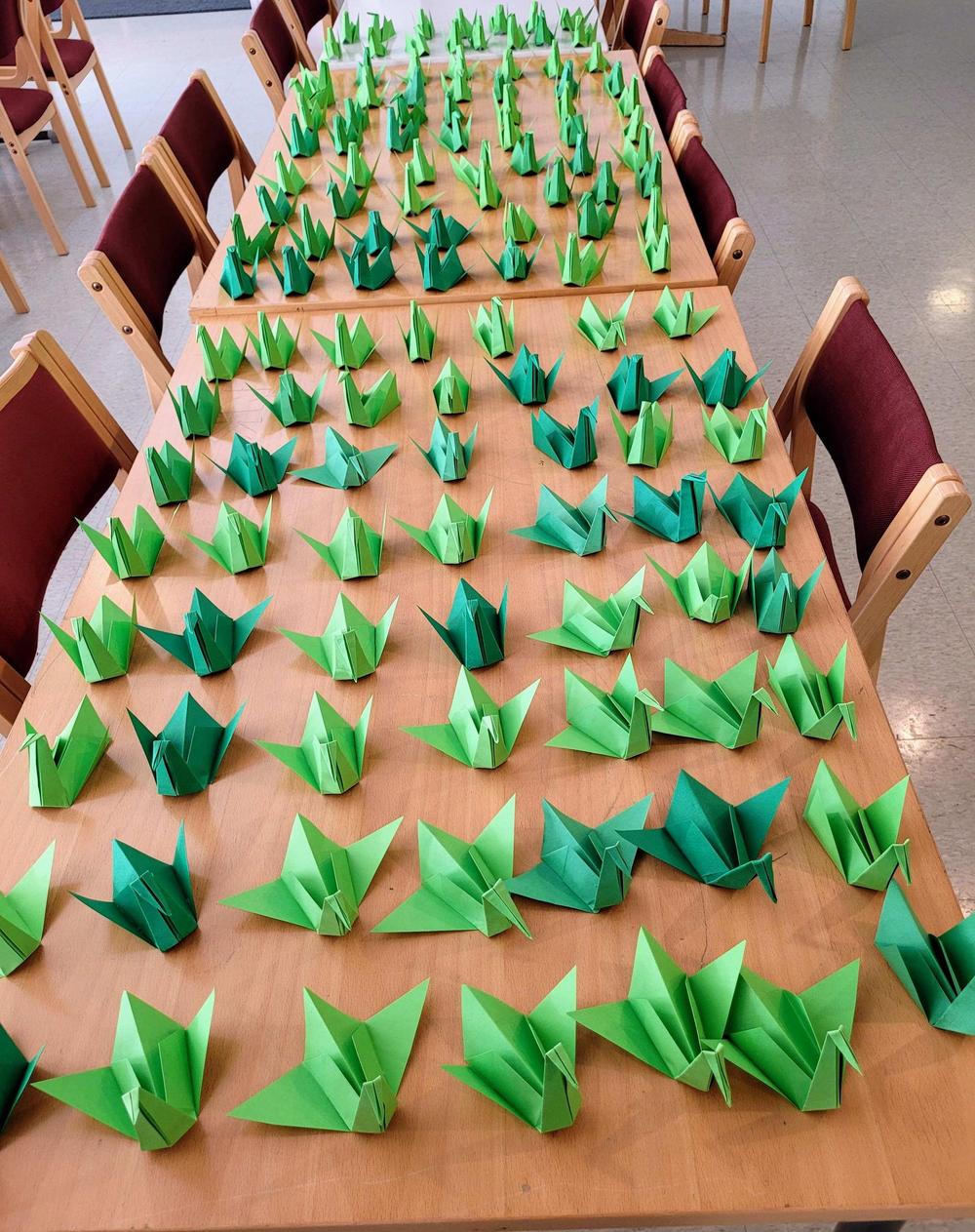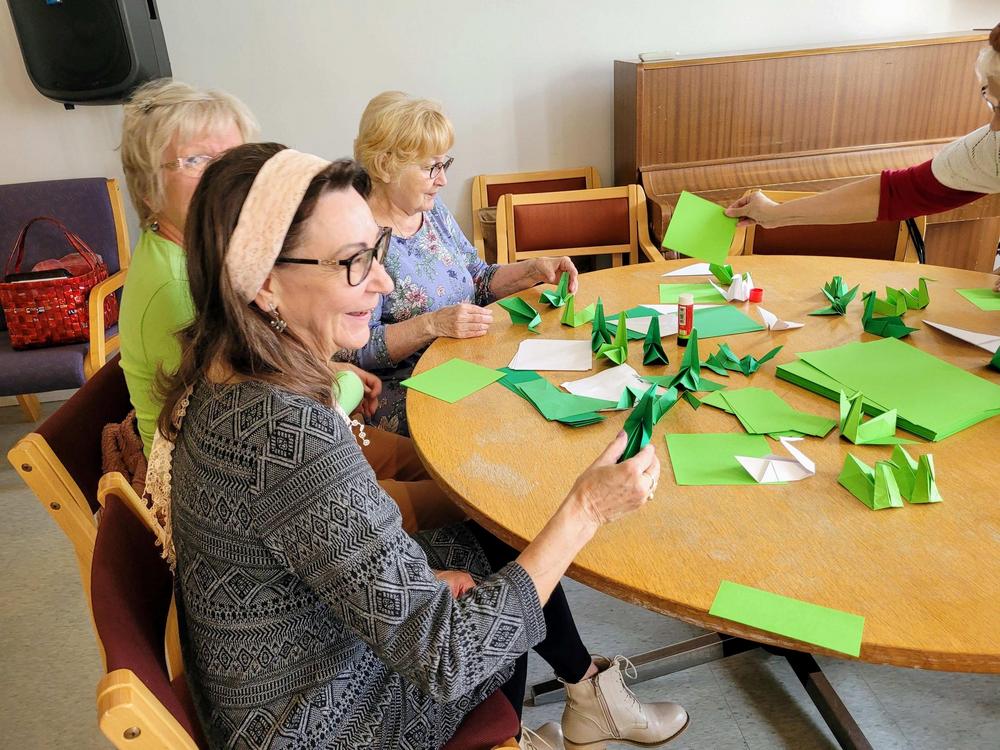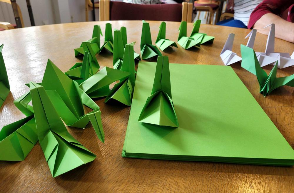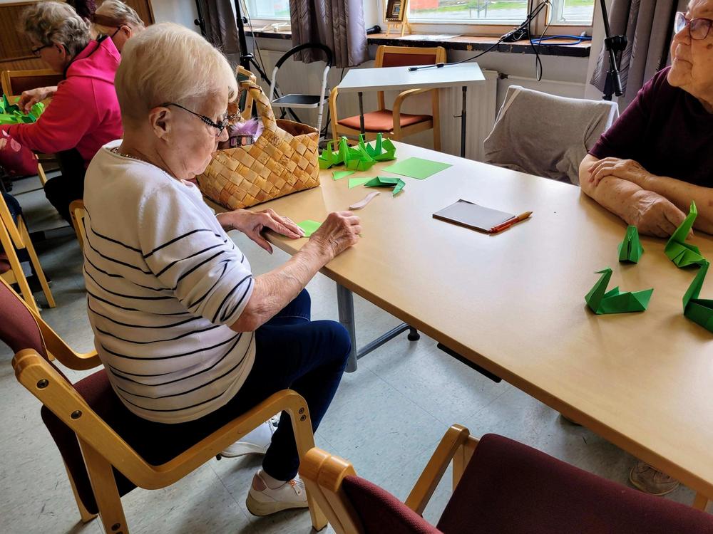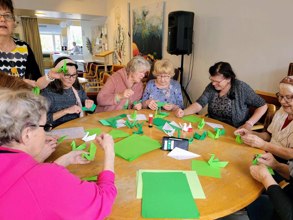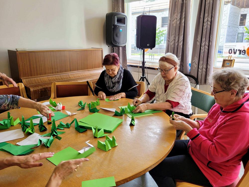 Tänään meitä oli pitkälti toistakymmentä iloista ja ahkeraa naista käsityökerhossa Servolla taittelemassa paperista joutsenia. Sirkka ja Pipsa opastivat meitä ja kyllä jokainen oppi. Näistä linnuista pitäisis tänä syksynä valmistua jotain kaunista, jonka kuvan jo näen sieluni silmin. Naiset kyselivät mistä sain idean ja totesivat, että idea on (taas) työtä vaativa toteutettava. Lopuksi minut leikkimielisesti, iloisen naurun kera, toivotettiin suolle, koska keksin liian työläitä ideoita. Jokohan suolla olisi karpaloita, joita voisi poimia?