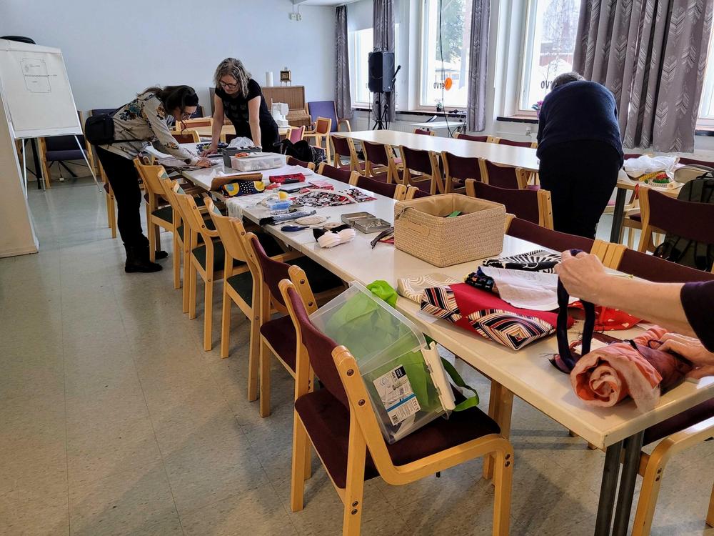 Käsityökerhossa ompelimme erilaisia pussukoita. Jokainen löysi mieleisensä kankaat, joista ommella ja kokovalikoima valmiissa pussukoissa oli laaja. Kauniita tuli kaikista. Osa jäi vielä kotiin viimeistettäväksi, mutta valmistakin saatiin aikaan. Kuten monesti käy käsitöitä tehdessä, niin välillä jouduttiin myös purkamaan ompeleita, mutta sekin tehtiin iloisen naurun säestämänä. Ja lopussa kiitos seisoo, kauniita pussukoita saatin tehtyä.