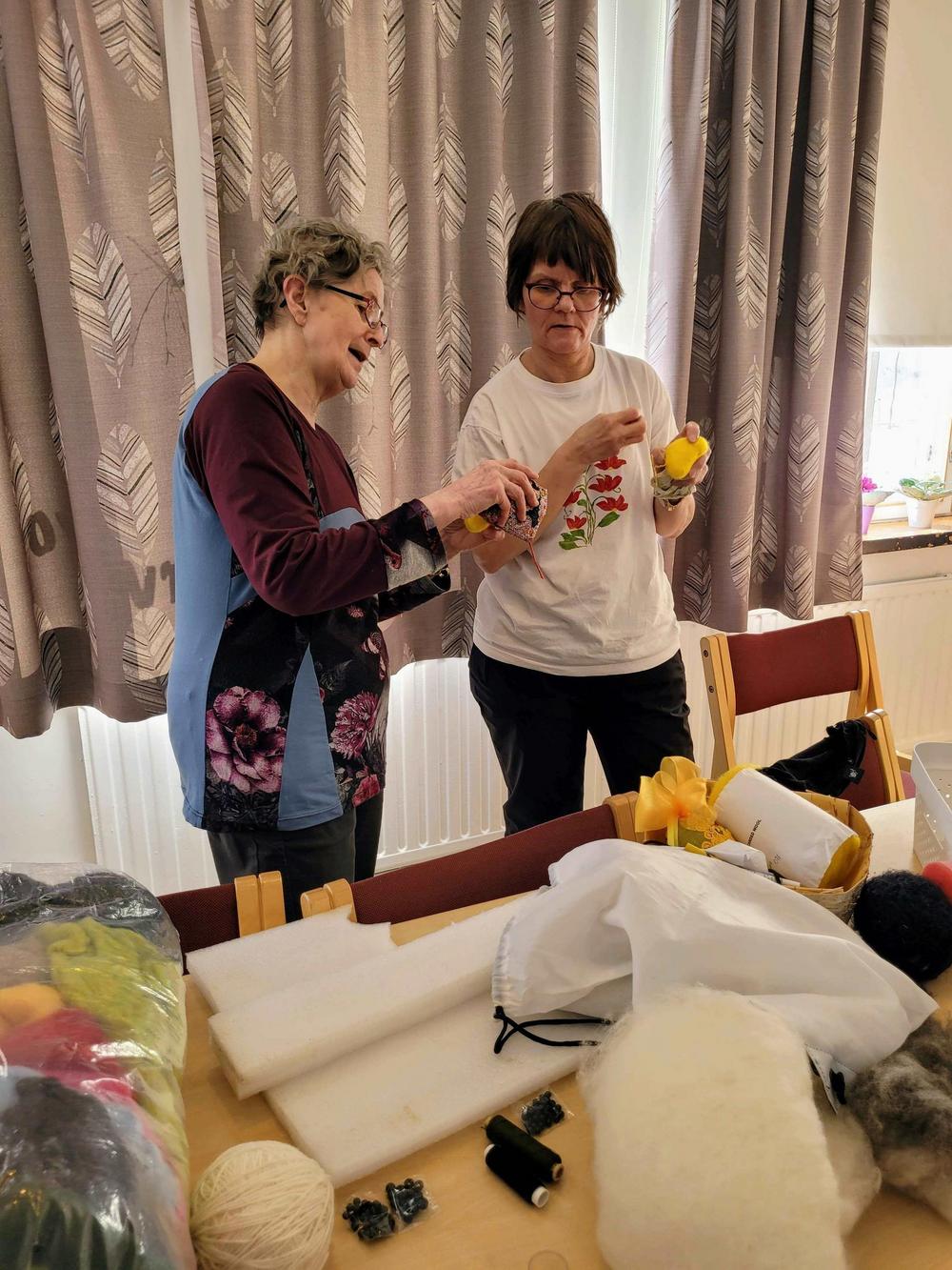 Torstaina tehtiin käsityökerhossa monenlaista kaunista, enimmäkseen pääsiäisen väreissä. Samalla saimme katsoa valmiia töitä, joista sai paljon ideoita kotiin vietäväksi tuleviin käsitöihin tai ehkä tulevissa käsityökerhoissa toteutettavaksi.