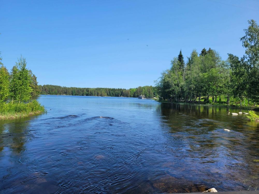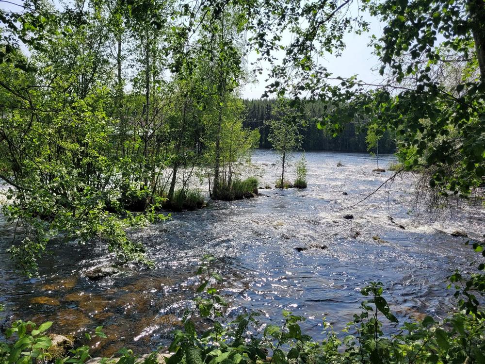 Meitä oli ihan täysi linja-autollinen porukkaa teatteriretkellä Kermankosken lavalla. Päivä oli mitä kaunein kesäpäivä ja puitteet Kermankosken lavalla varsinkin maiseman suhteen olivat aivan upeat.