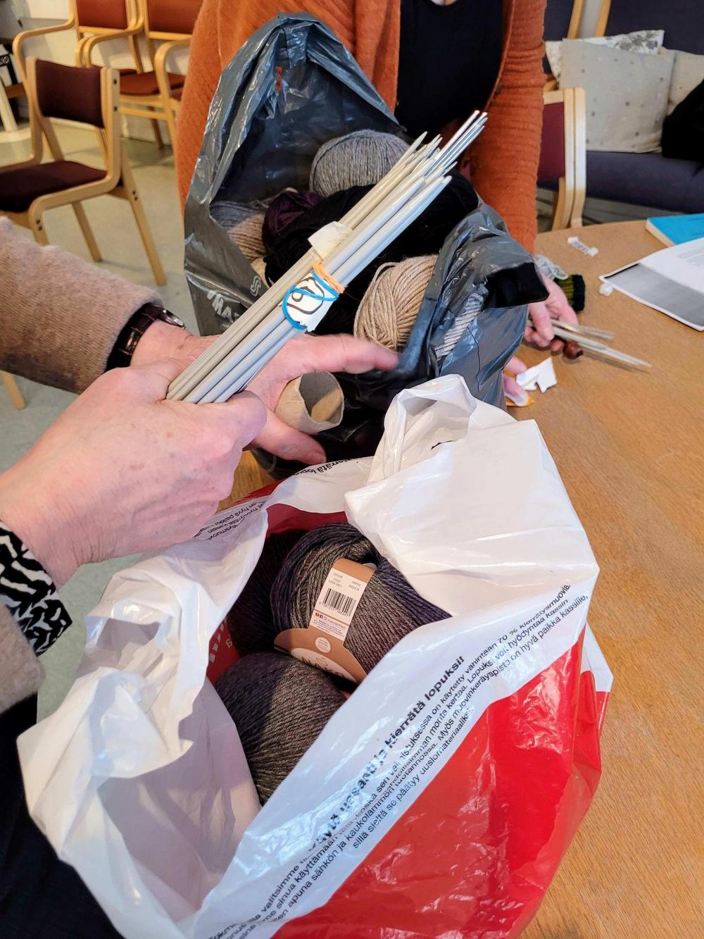 Kokoonnuimme tänään 24.2. Servolle neulomaan yhdessä Ukrainaan. Meitä oli paikalla 15 osallistujaa. Lisäksi saimme lahjoituksena neuelankoja, -puikkoja ja sukkia. Kuvissa on yhdet valmiit liipasinlapaset, mutta tänään taidettiin neuloa enimmäkseen sukkia. Neulomista jatketaan kotona, koska isoja miesten sukkia ei ihan parissa tunnissa saa vamiiksi. Pääsimme kuitenkin hyvään alkuun.