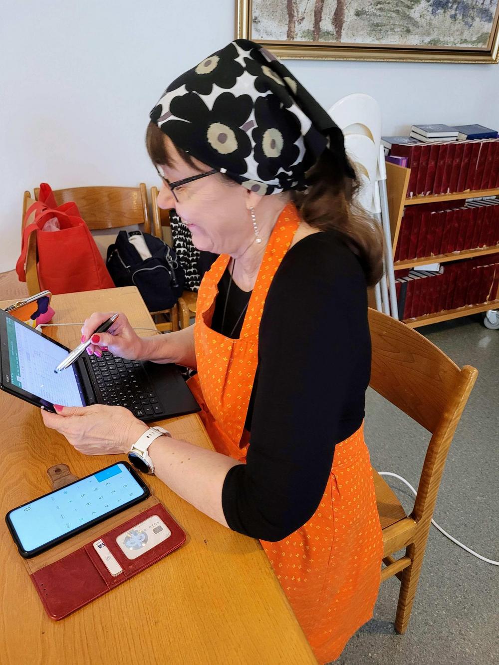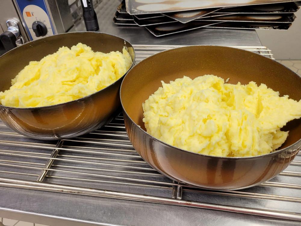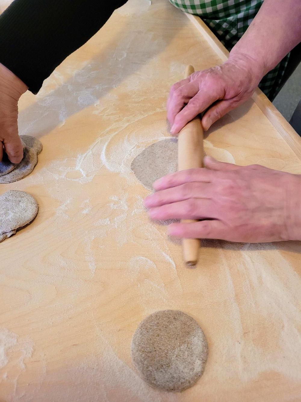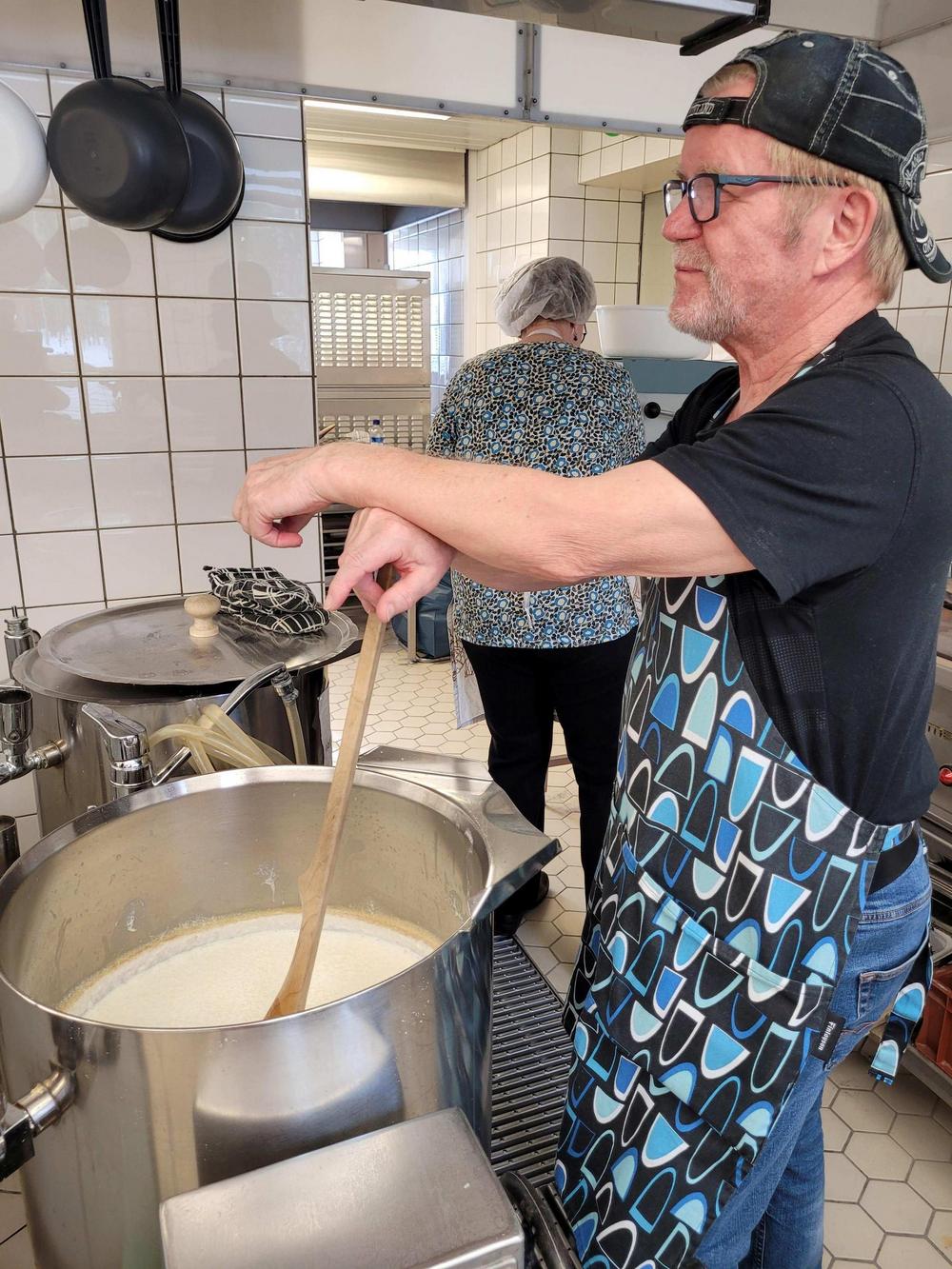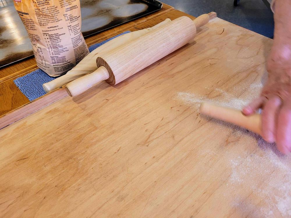 Tekemistä löytyy monenlaista ja välillä käy niin, että joku tekee ihan eri hommaa kuin edellisellä kerralla. Minä olin tänään ensimmäistä kertaa voitelemassa piirakoita ja Kirsti oli paistamassa, kummallekin taisi olla ensimmäinen kerta näissä tehtävissä, ainakin näin suuria määriä käsiteltäessä, onhan se vähän erilaista kuin kotona. Piirakantekijät olivat niin nopeita, että paistopellit eivät juuri ehtineet jäähtyä, kun ne jo vietiin taas pois keittiöstä. Vipinää riitti jokaisessa työpisteessä.
