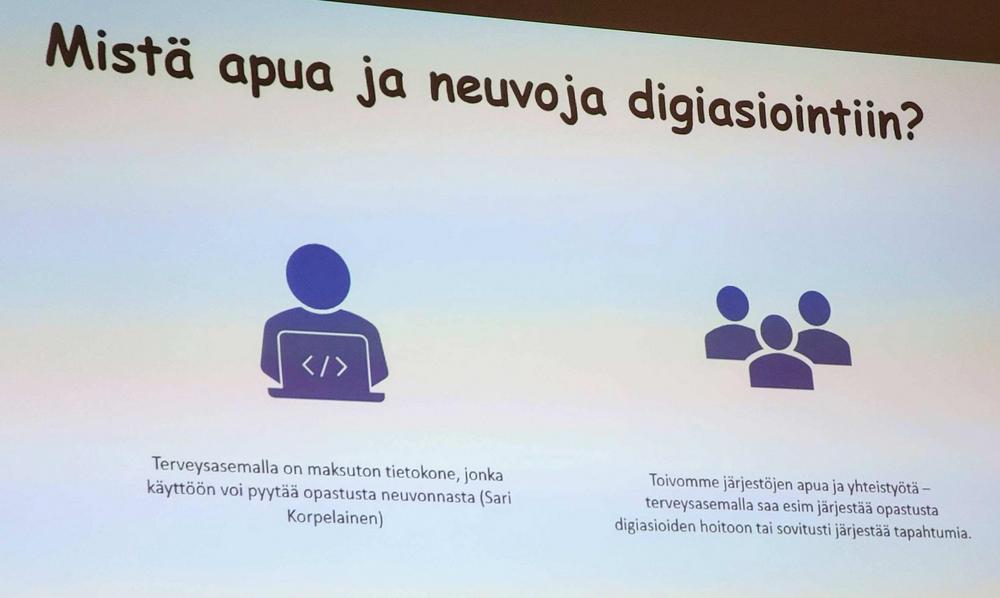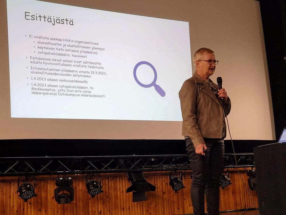 Tänä iltana oli Outokummun Reumayhdistyksen järjestämä yleisöluento Elokuvateatteri Maritassa. Yleislääketieteen erikoislääkäri Hilkka Tirkkonen kertoi ajankohtaisia asioita Outokummun ja Polvijärven terveysasemien toiminnasta. Saimme nähdä havainnekuvia uudesta Outokummun terveysasemasta, jota rakennetaan säänsuojateltan alla siihen saakka kun kattohuopa on asennettu. Yleisö sai myös esittää kysymyksiä mieltä askarruttaneista kysymyksistä.