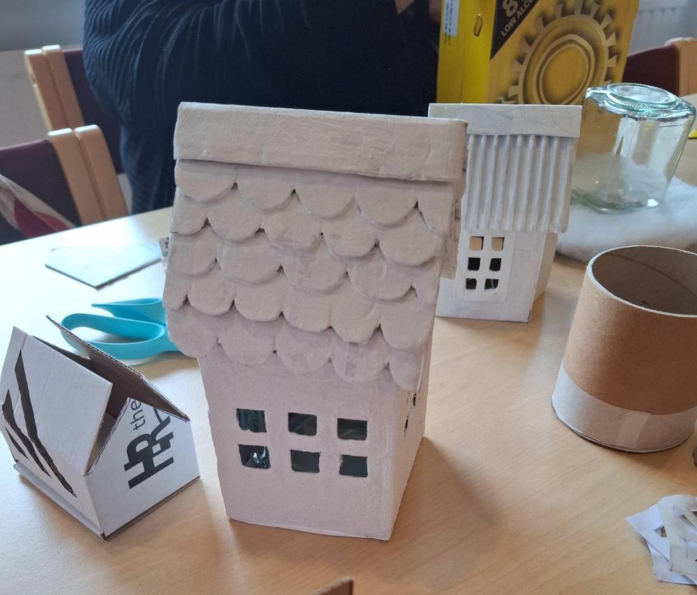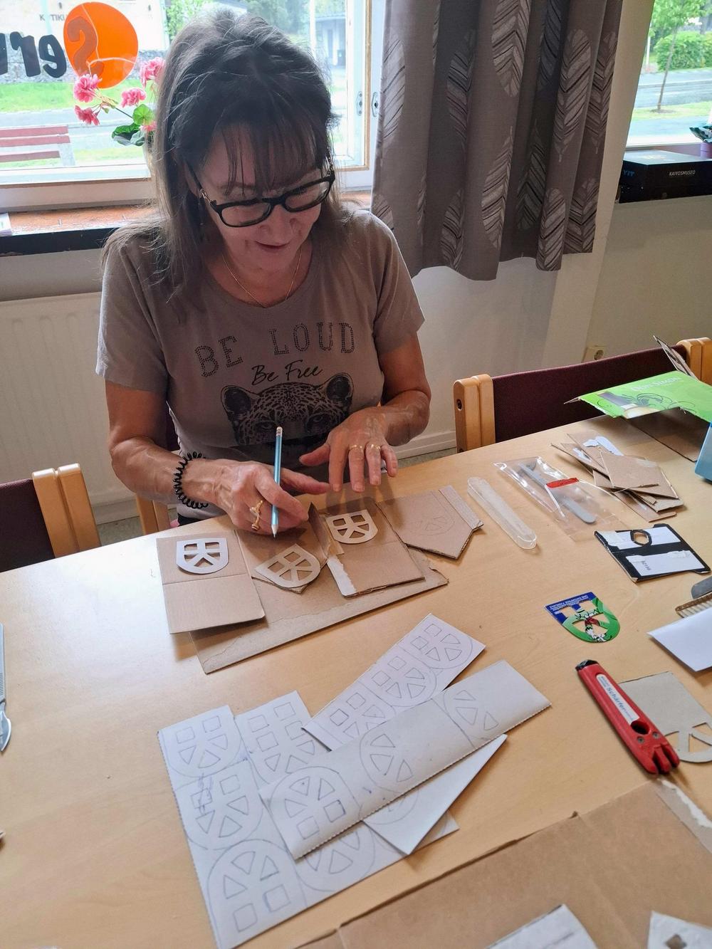 Syksyn ensimmäisessä käsityökerhossa ennakoimme jo alati lyhenevää valoisaa aikaa ja vastaavasti lisääntyvää pimeää aikaa. Teimme kierrätysmateriaalista valomökkejä, joiden sisälle voi laittaa patterilla toimivia koristevaloja. Uskomatonta miten kauniita valomökkejä saa tehtyä pahvista, munakennoista ym. materiaalista, joka yleensä heitetään roskiin, toivottavasti kuitenkin lajiteltuna oikeaan keräyslaatikkoon. Lisäksi liimaa, maalia, teräviä veitsiä ja ehkä vielä muitakin työvälineitä, niin lopputulos on upea. Käsityökerhossa aika jäi hieman lyhyeksi, joten maalia otettiin mukaan, että mökit voi maalata kotona.