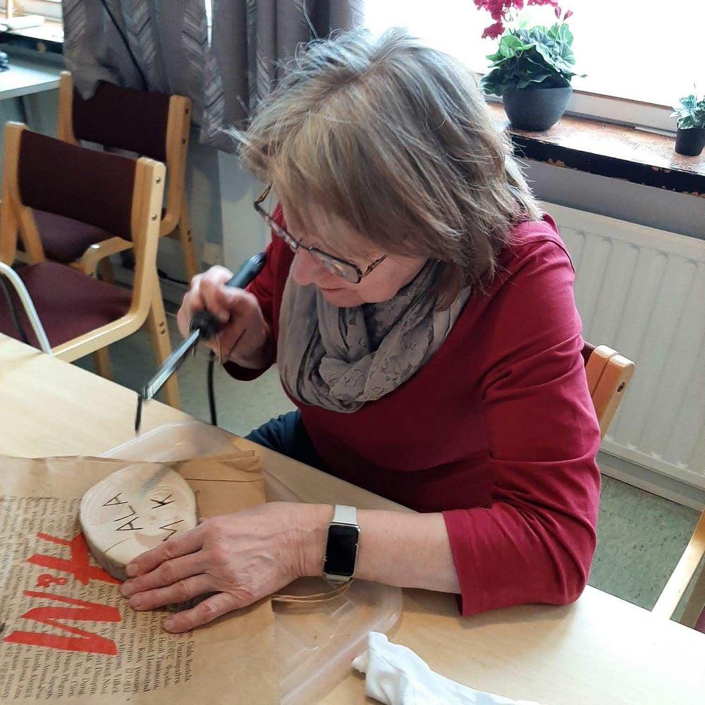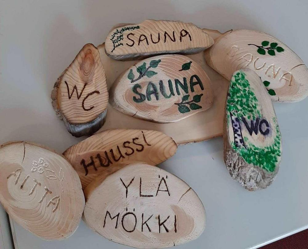 Käsityökerhossa tehtiin monenlaisia kylttejä ja herkuteltiin upealla kakulla.