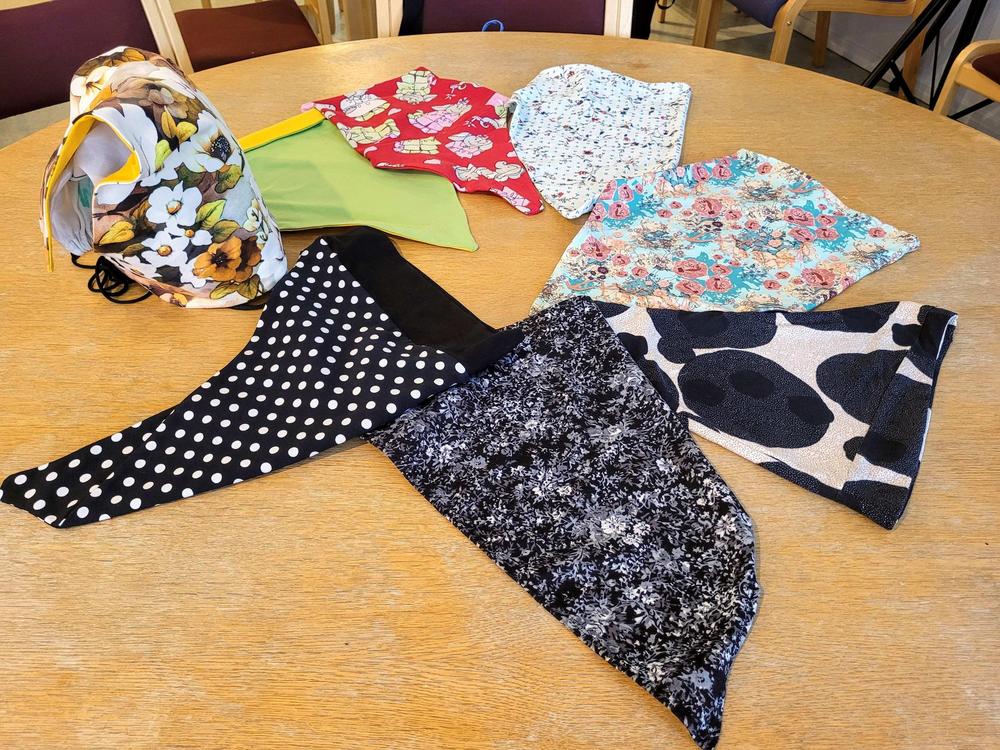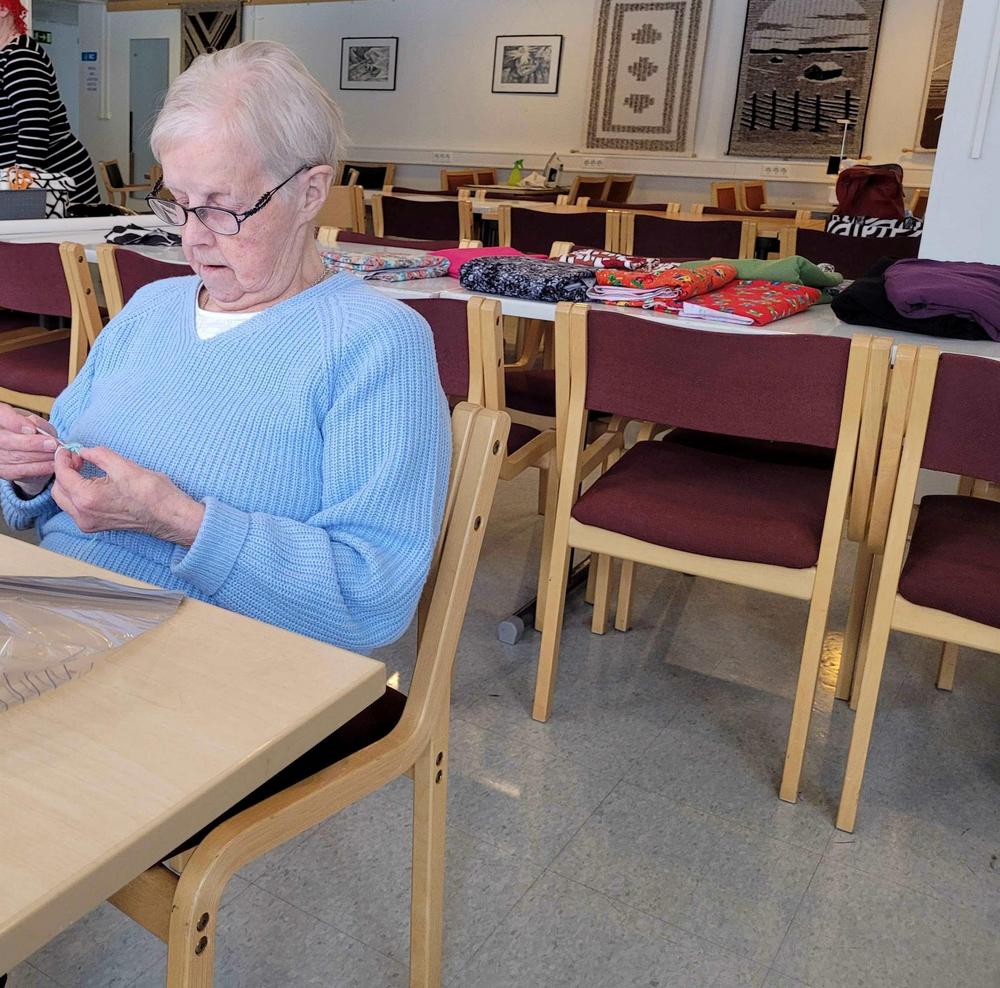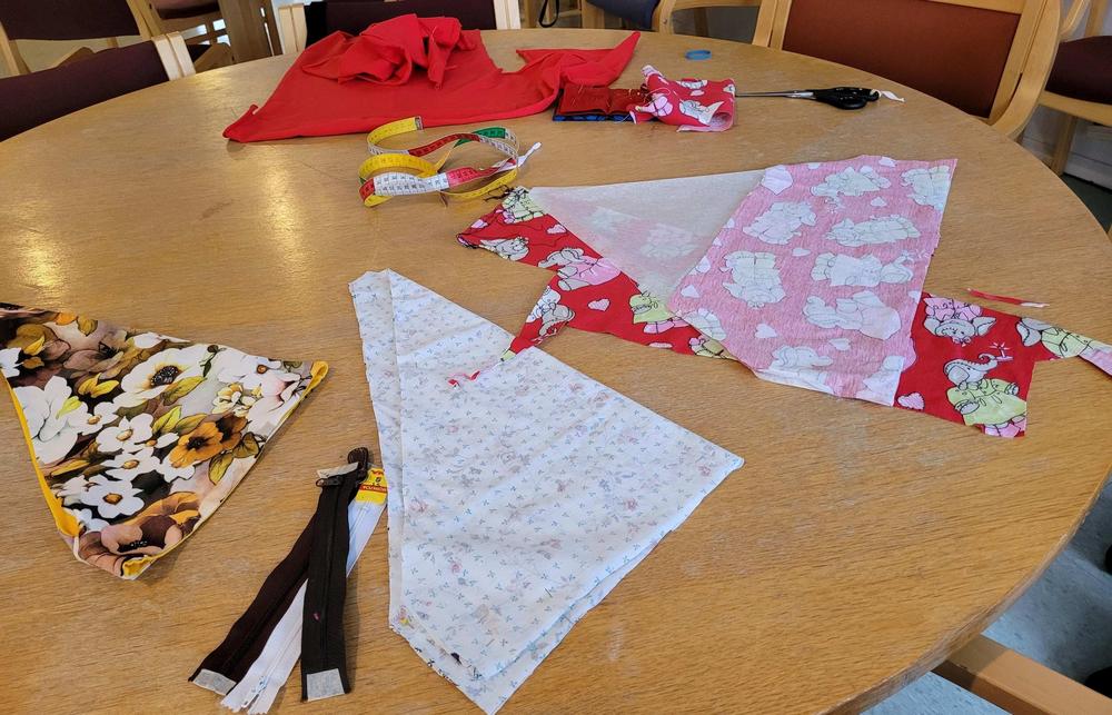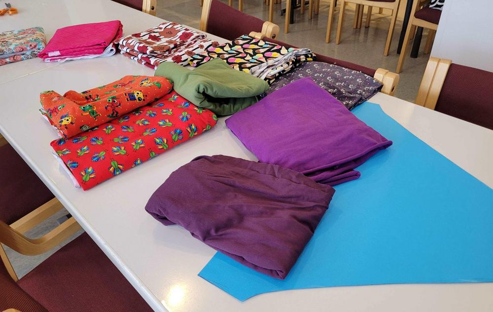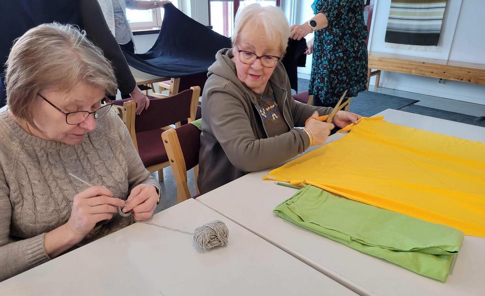 Käsityökerhossa ommeltiin huiveja ja virkattiin tuolitöppösiä. Suurin osa huiveista tehtiin uudesta kankaasta, mutta materiaalina voi käyttää myös kierrätysmateriaalia, esim. vanhoista T-paidoista leikattua kangasta.