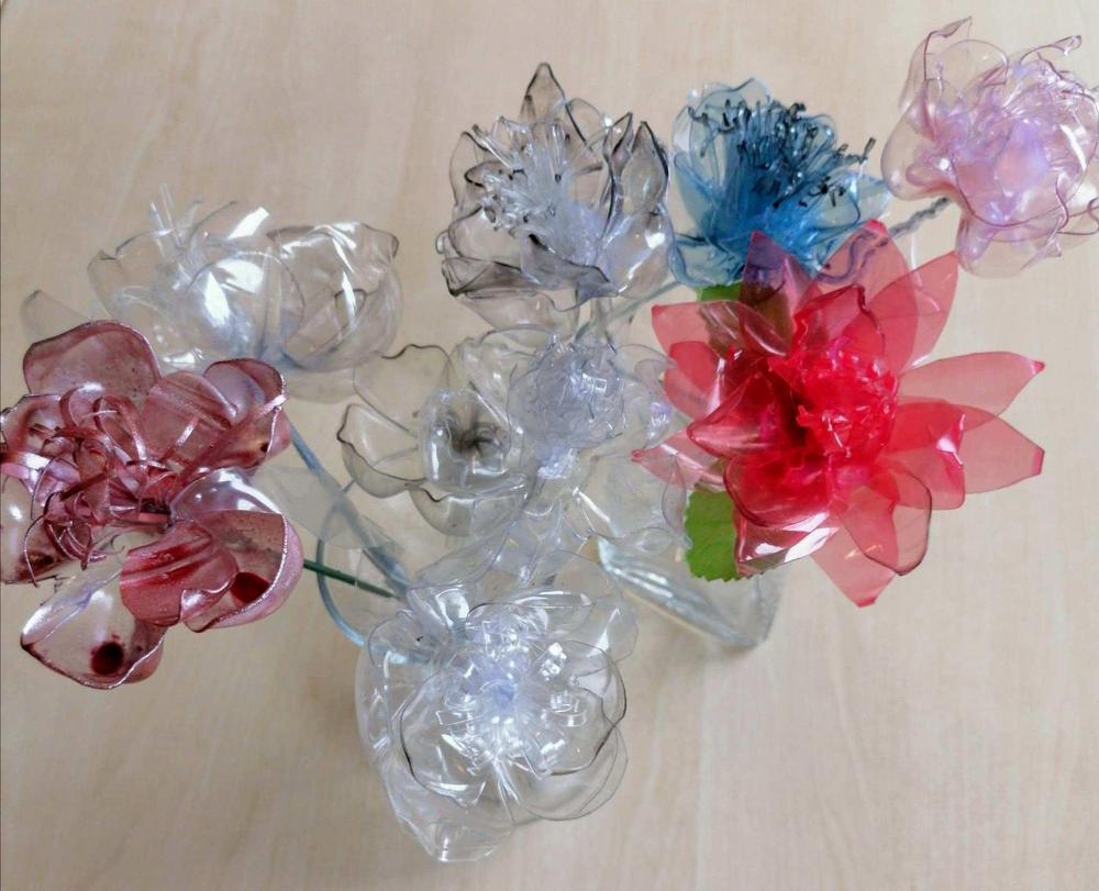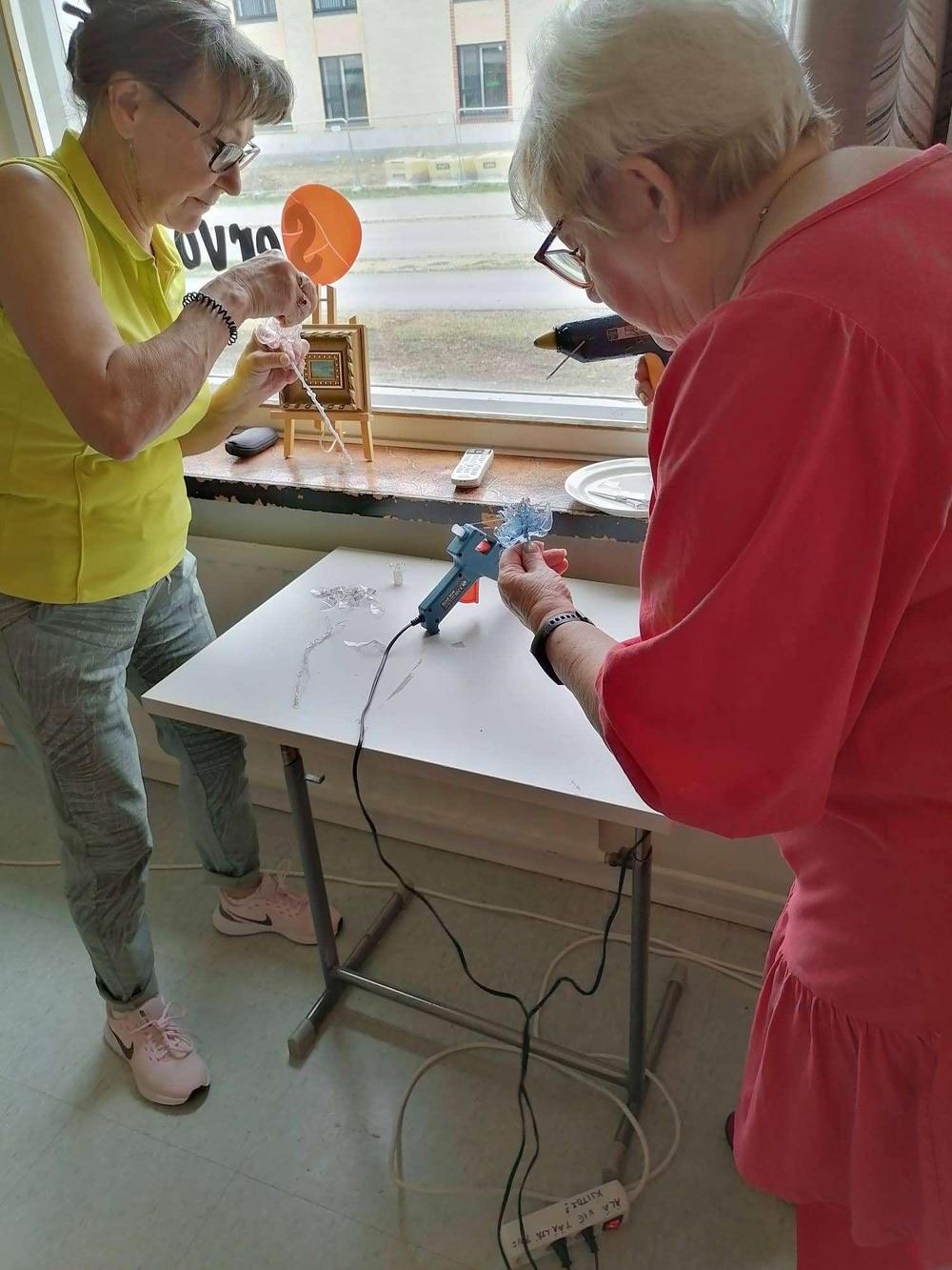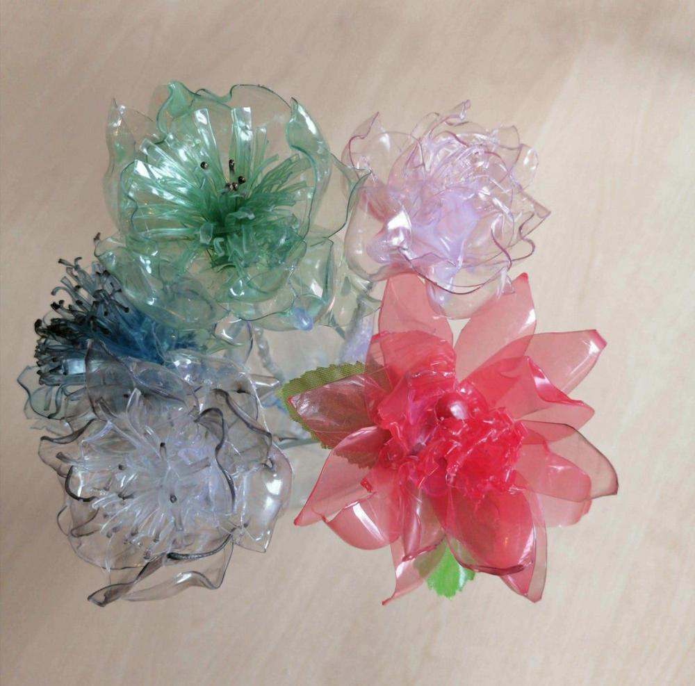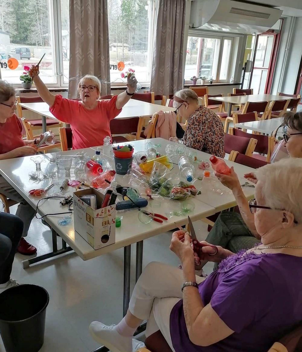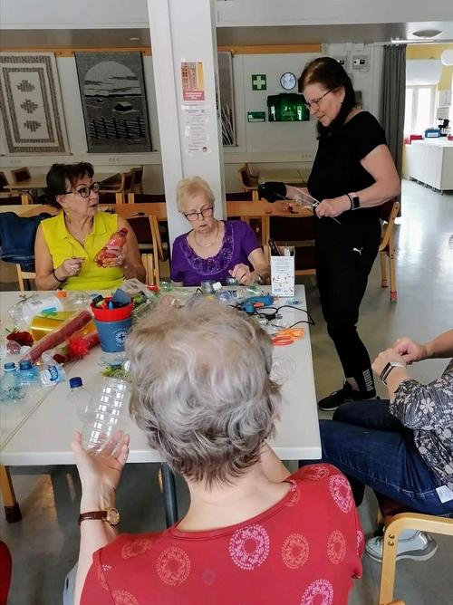 Kevään viimeisen käsityökerhon satoa, kierrätysmateriaalista tehtyjä muovikukkia. Kesä pidetään taukoa tästäkin kerhotoiminnasta ja syksyllä jälleen jatketaan käsitöiden parissa. Ensin kuitenkin vietetään KESÄ