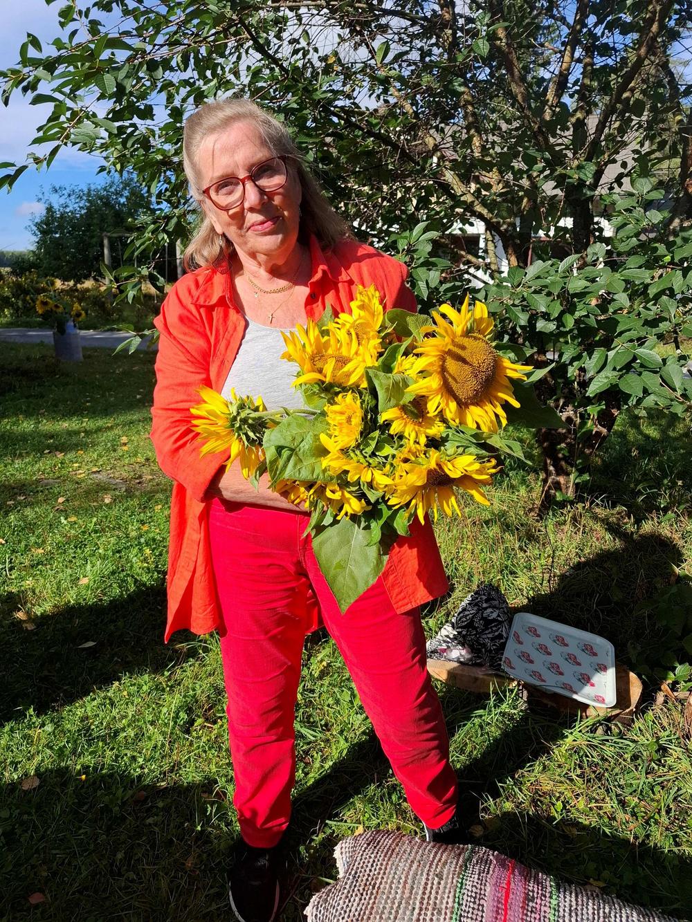 Auringonkukkapelto myös ihastutti meitä ja mikä parasta, saimme ottaa mukaan auringonkukkia kotiin vietäväksi.
