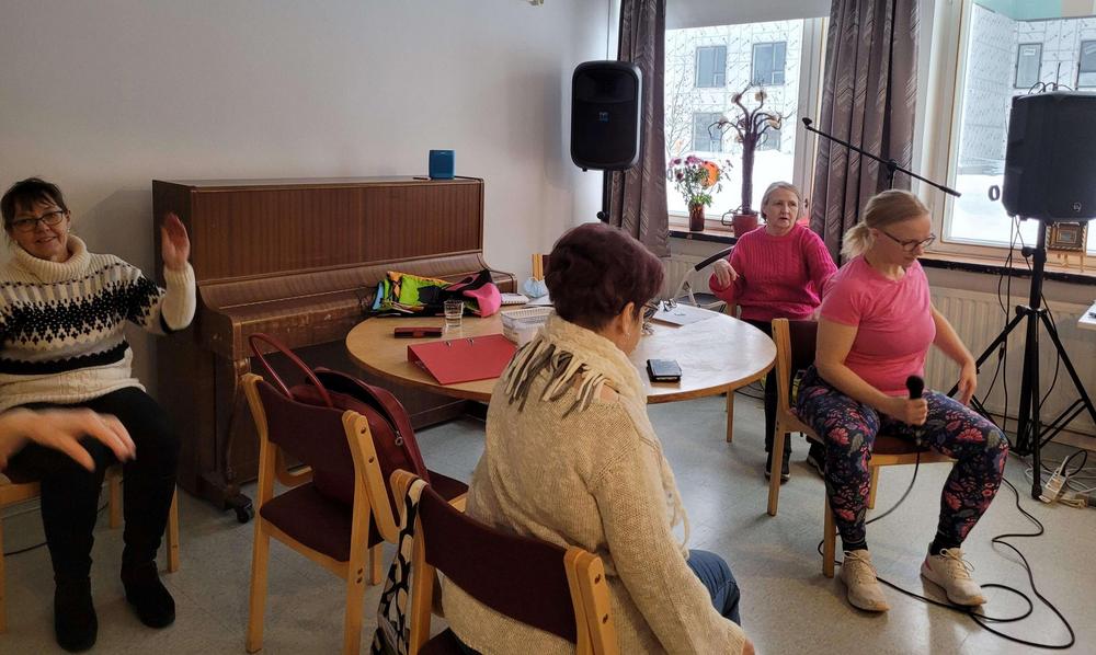 Kun niin ahkerasti liikuimme puoli tuntia, niin ajattelin, että kerhon jälkeiseen tuolijumppaan ei taida jäädä ketään. Mutta niin vain siihenkin jäi iso joukko liikkumaan. Olihan siinä välillä ehditty juoda kahvit ja miettiä kevään ohjelmaa sekä ensi kesän retkiä, joten sen jälkeen jaksoi taas jumpata.