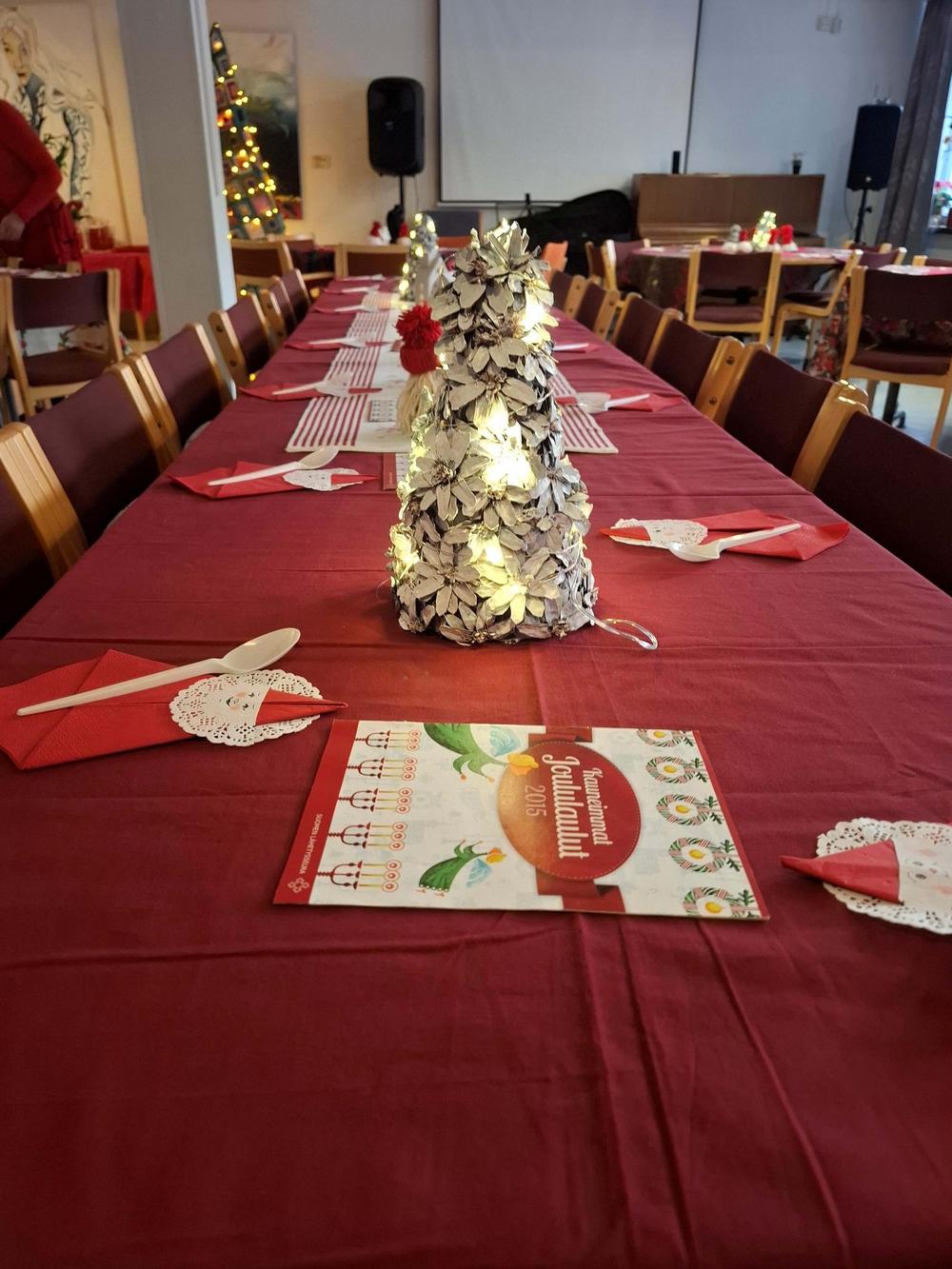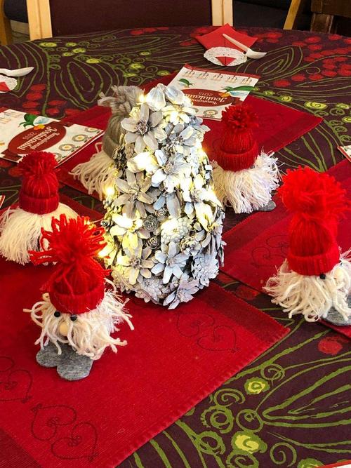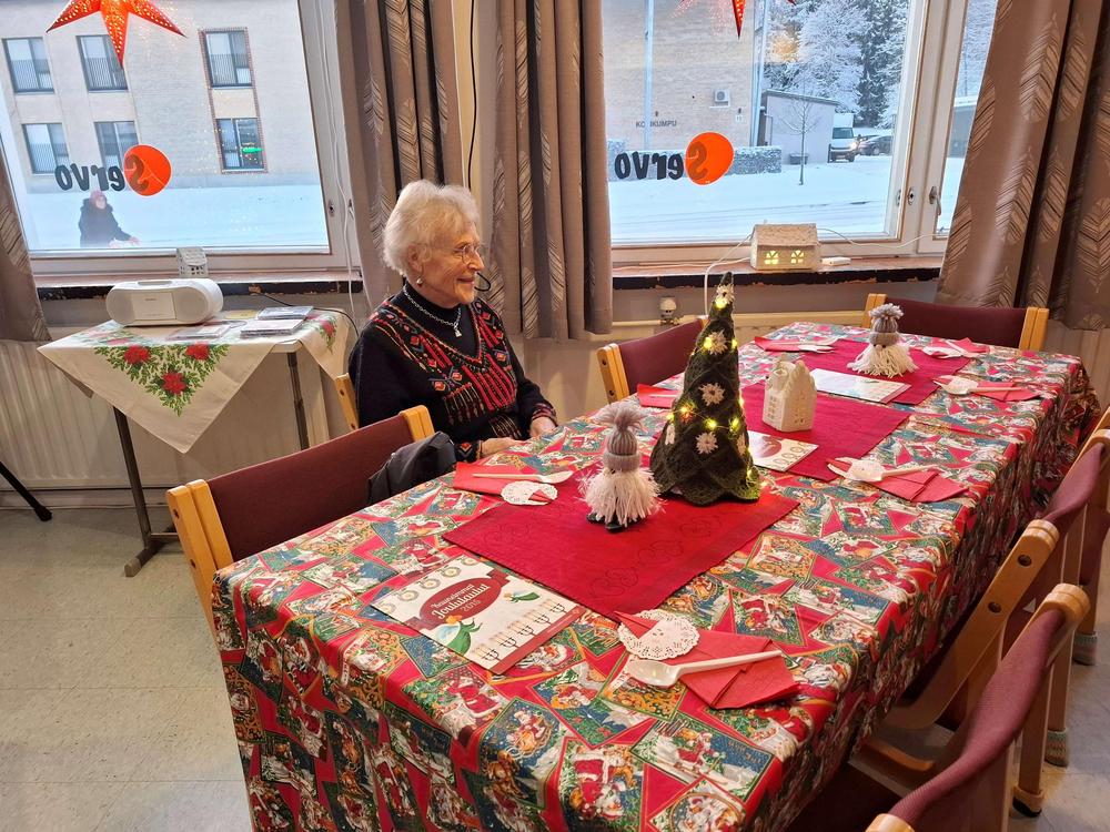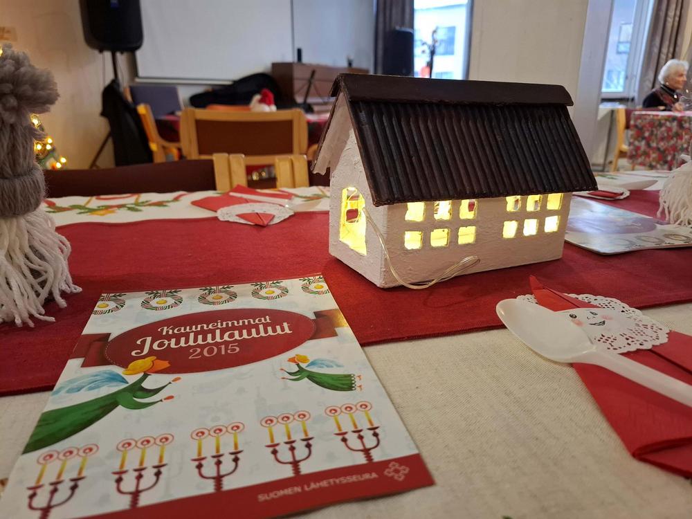 Söimme riisipuuroa ja joimme kahvit joulutorttujen kera. Lauloimme yhdessä joululauluja, kuulimme joulurunon ja katselimme senioritanssia. Lopuksi arvoimme osallistujien kesken herkkukorin ja muutamia pienempiä palkintoja.