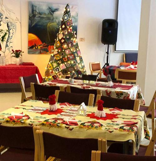 Kauniina talvisena iltpävänä vietimme yhdistyksen puurojuhlaa Servolla. Sali oli aivan täynnä, enempää sinne ei olisi mahtunut, koska ohjelman esittäjille piti jääd tilaa salin etuosaan.