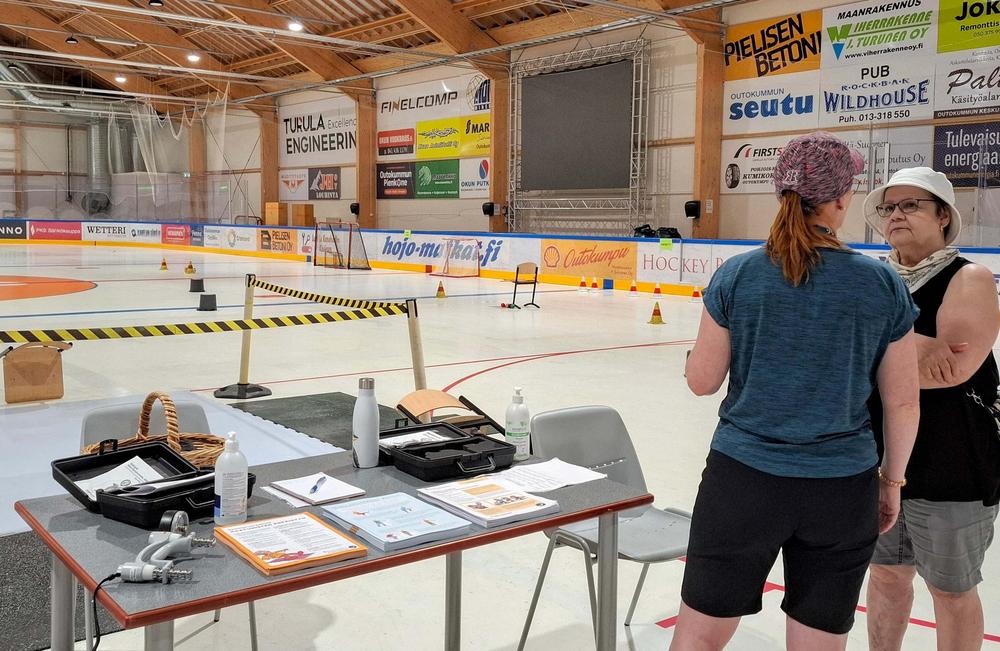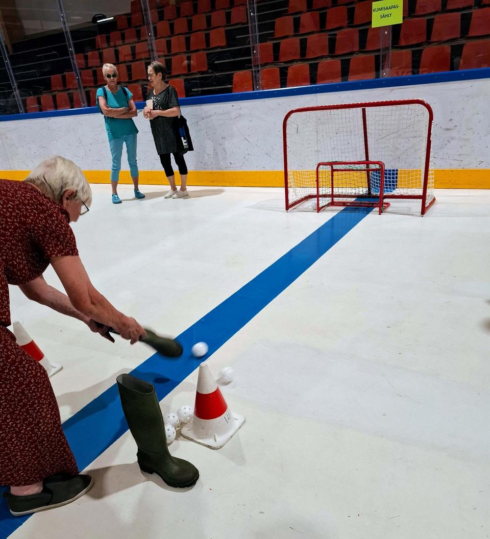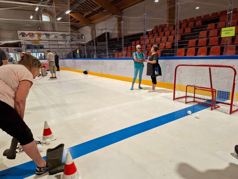 Senioreiden kunnon kesäpäivää vietettiin helteisenä keskiviikkona. Hyvää säätä oli toivottu, mutta lämpöä oli kuitenkin vähän liiankin runsaasti. Siksi tehtiin viime hetken muutoksia ja siirrettiin tapahtuma jäähalliin sisätiloihin. Ensin siellä tuntui oikein viielältä, mutta liikkuessa sielläkin sai hien pintaan.