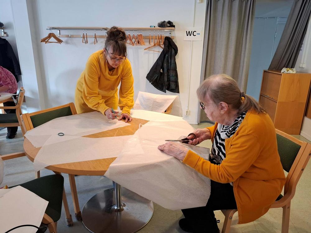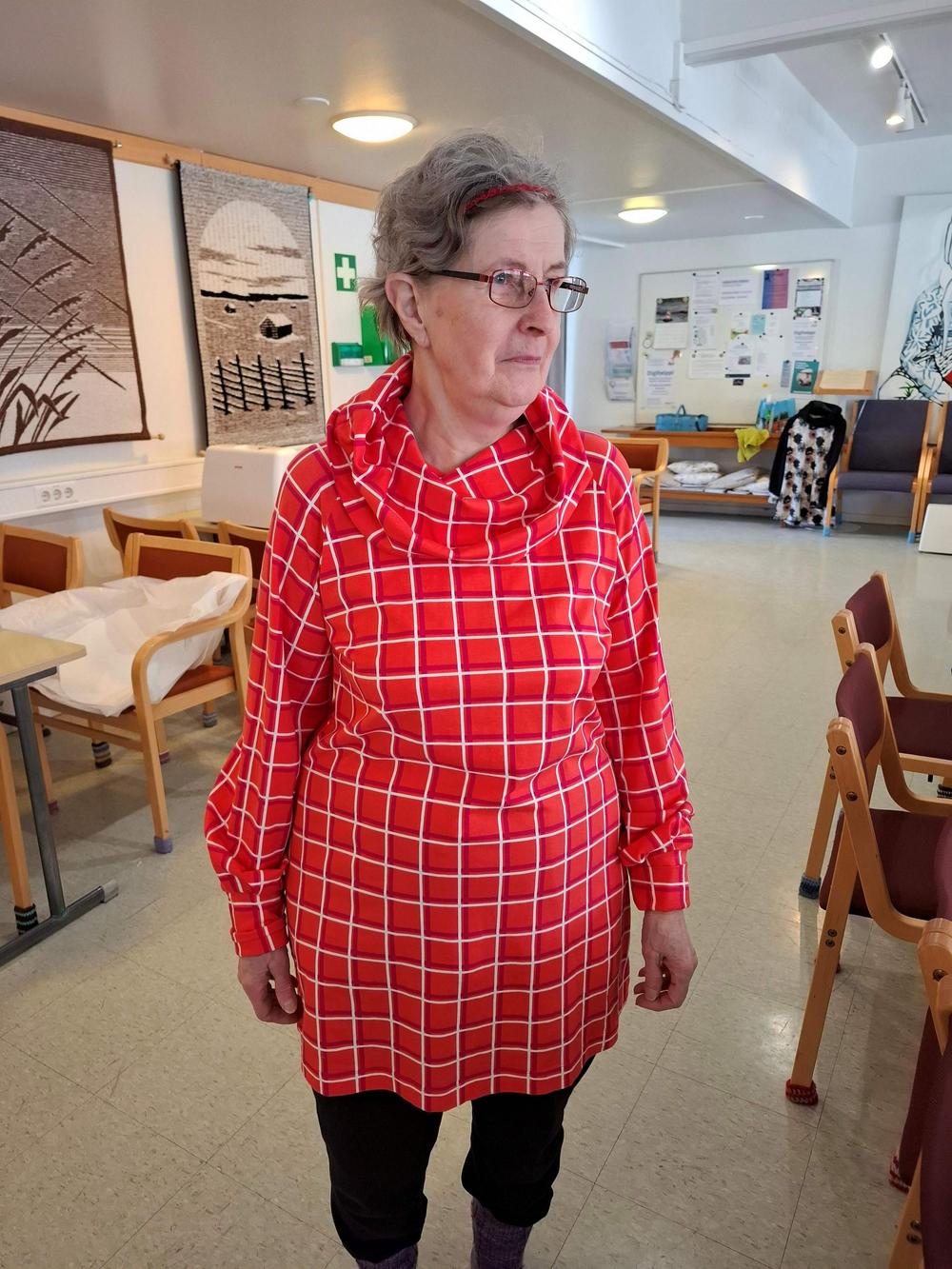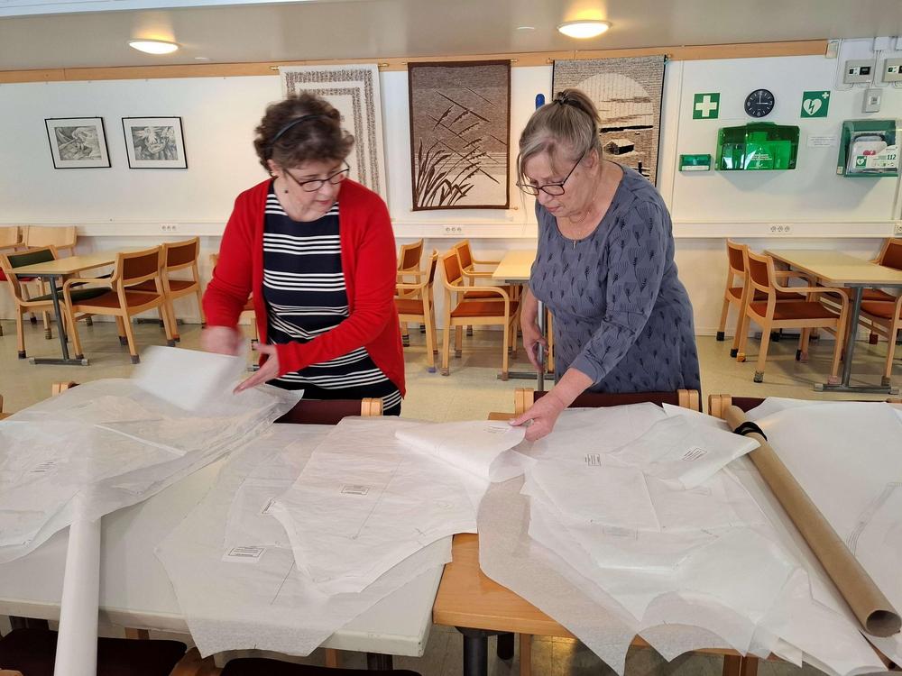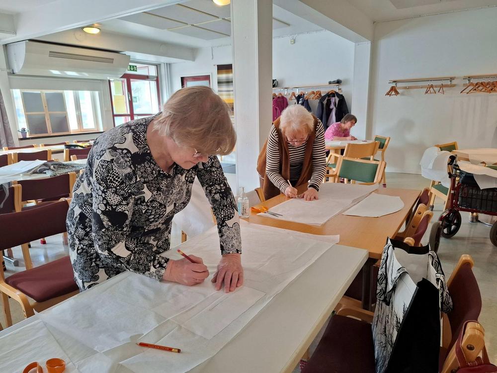 Tämän päivän käsityökerhossa ommeltiin tunika yhdistyksen hankkimilla kaavoilla. Suurin osa ajasta taisi mennä kaavojen piirtämiseen ja kankaan leikkaamiseen, mutta ompelutyöhönkin ehti ainakin osa porukasta.