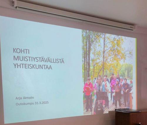 Maanantaina 31.3. meitä oli Servolla salin täydeltä porukkaa kuuntelemassa ja keskustelemassa tärkeästä aiheesta. Tietokirjailija Arja Jämsén kertoi aiheesta Kuinka kohtaan muistisairaan ja kuinka muistisairauden kanssa eletään.
