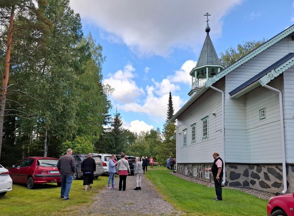 Aurinkoisena syyskuun ensimmäisenä maanantaina aloitimme Outokummun Reumayhdistyksen syksyn kerhotoiminnan vierailulla Outokummun Ortodoksiseen kirkkoon (Pyhän Hengen kirkko). Tapahtuma oli osa Suomen Reumaliiton syksyn kulttuurikävelytapahtumaa ja tapahtuma on ilmoitettu Euroopan kulttuuriympäristöpäivien kalenteriin. Meitä oli paikalla noin 80 ja paikalle tultiin monella eri tavalla. Osa tuli kävellen, osa polkupyörällä ja osa autolla. Näin toteutui se, että liikuntarajoitteet eivät estäneet tapahtumaan osallistumista.