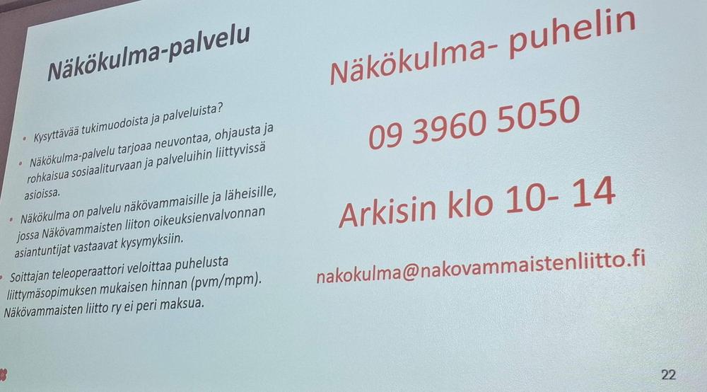 Maanantaina 16.2. meillä oli Servolla kerhossa asiantuntijavieraana oikeuksienvalvonnan- ja työelämäasiantuntija Tapio Tiilikainen / Näkövammaisten liitto ry. Saimme tietoa näöstä ja niistä syistä joiden vuoksi näkö heikkenee. Saimme tietää, mitä apua on saatavissa ja mistä. Yleisö sai esittää kysymyksiä ja kommentteja.