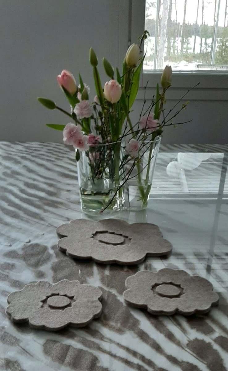 Käsityökerhossa tehdään huopakankaasta pöytätabletteja / lasinalusia. Materiaaleja saa paikan päältä materiaalimaksua vastaan.