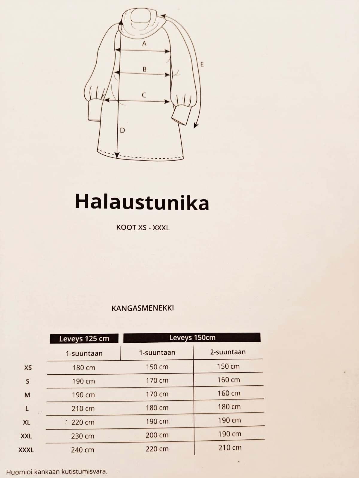 Käsityökerhossa ommeellaan tunika. Kaavat ja ompelulangat yhdistykseltä, omat kankaat mukaan. Liitteenä olevasta kuvasta voi katsoa kankaan menekin koon mukaan.