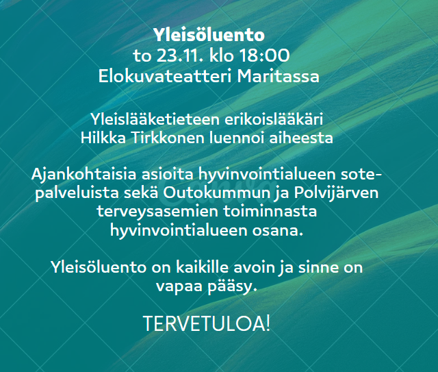 Yleisöluento on kaikille avoin ja sinne on vapaa pääsy. Tervetuloa!